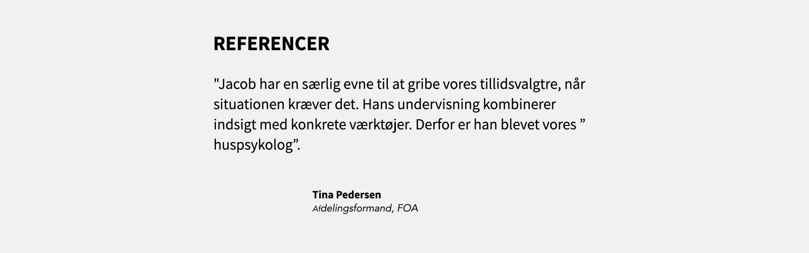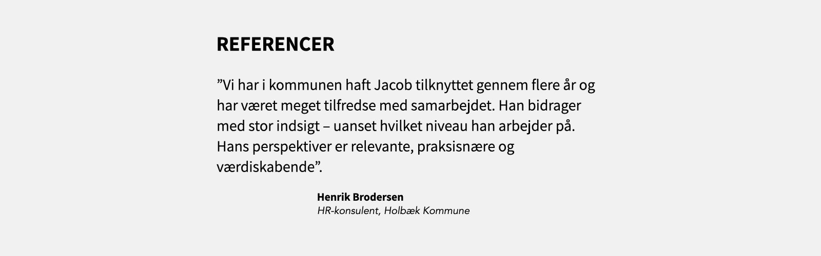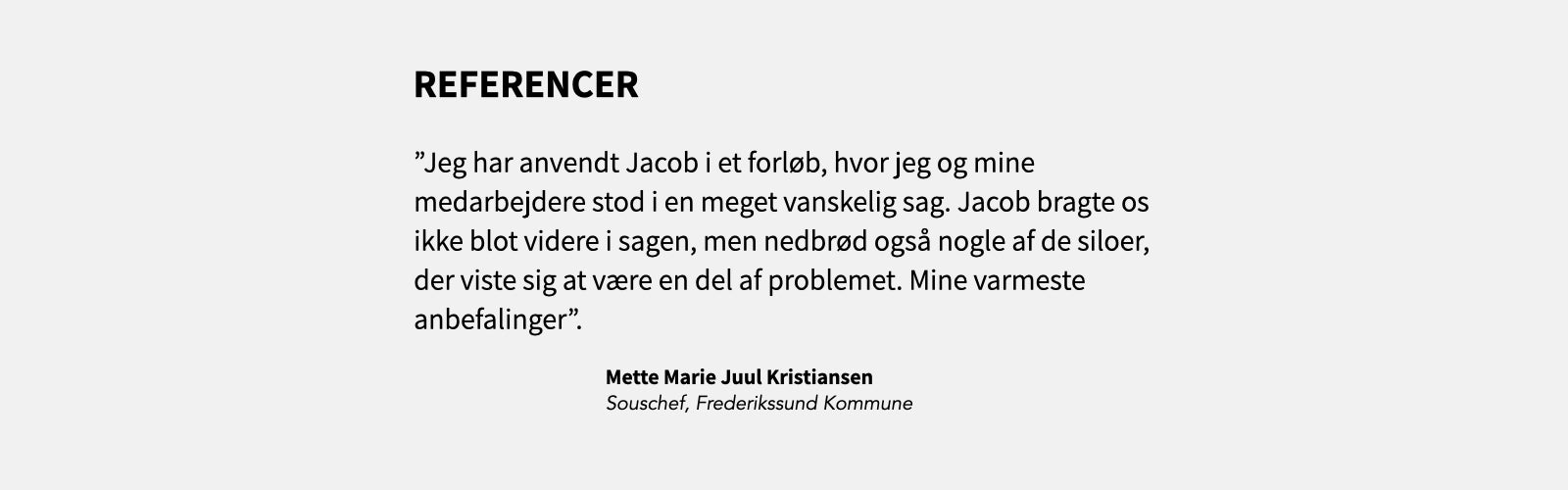 Jeg er autoriseret krise- og organisationspsykolog og arbejder med at støtte ledere, medarbejdere og organisationer, når arbejdslivet, dialogen eller samarbejdet bliver komplekst eller bare svært af en eller anden grund. Jeg har erfaring fra en bred vifte af sammenhænge – alt fra det danske forsvar, kommunale botilbud, styrelser og ikke mindst medarbejdere- og ledergrupper på forskellige niveauer over til fagbevægelsen og arbejde på direktionsgangene.