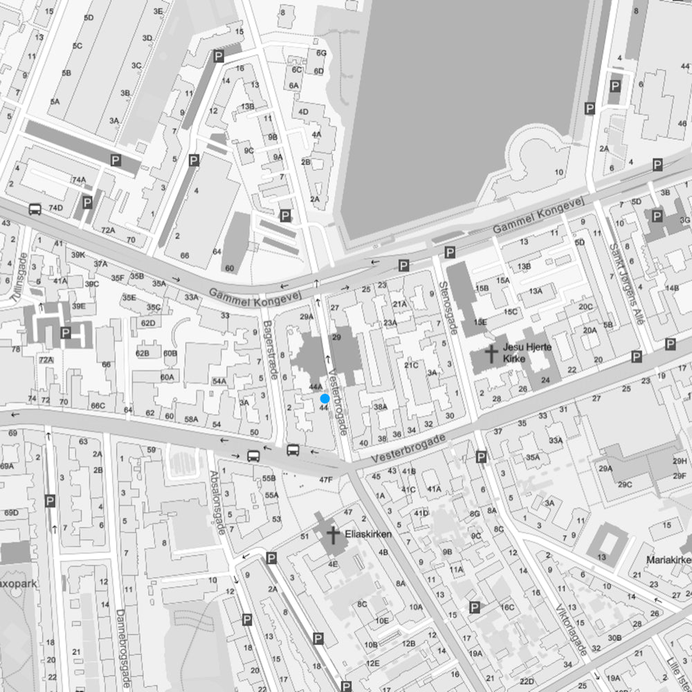 Jeg holder til dagligt på Vesterbrogade 44 – helt inde i tredje baggård. Det er gammelt. Og det kan være lidt svært at finde. Regn med et par ekstra minutter første gang.
